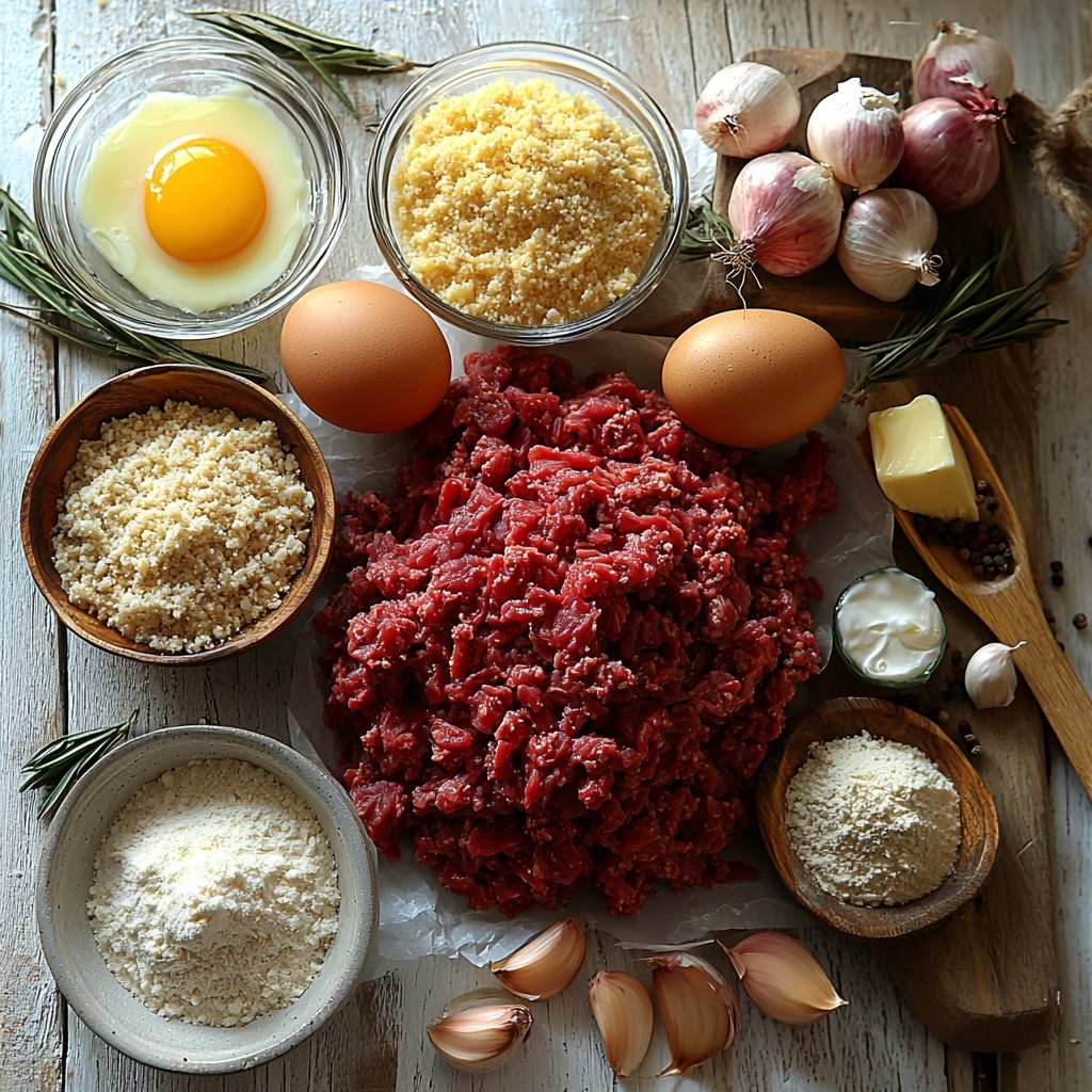- Prepare Meat Mixture: In a large mixing bowl, combine the ground beef, breadcrumbs, beaten egg, finely diced onion, salt, black pepper, and garlic powder. Mix thoroughly until all ingredients are well incorporated.