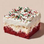 Once your cake has chilled and the pudding is set, spread the thawed whipped topping evenly over the surface. This layer provides a light and fluffy contrast to the denser cake beneath. Finish off your holiday masterpiece by sprinkling red and green festive sprinkles on top, and if you’re feeling extra festive, add white chocolate curls or crushed peppermint for a beautiful and flavorful touch.
