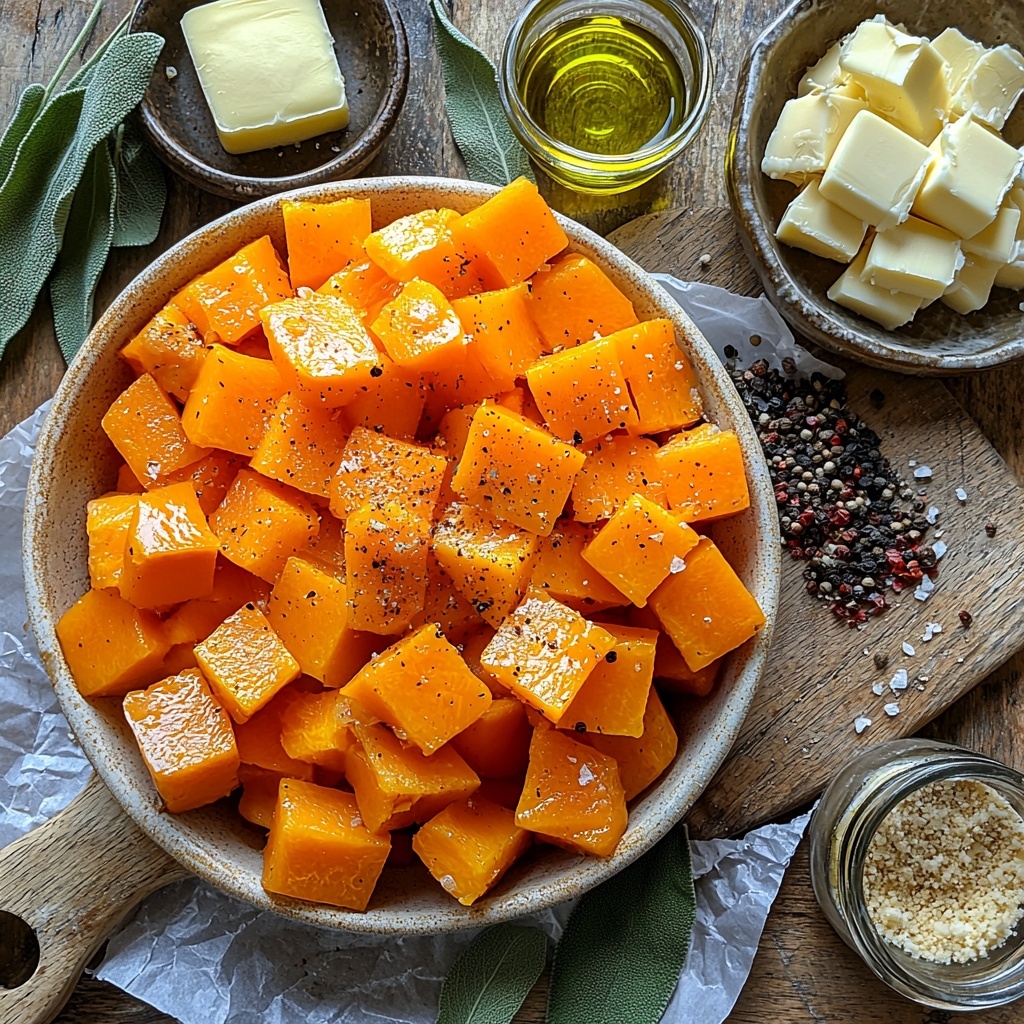 Start by preheating your oven to 400°F (200°C). Peel and cube the butternut squash into bite-sized pieces. Toss the cubes gently with olive oil, salt, and freshly ground black pepper to evenly coat. Spread them out on a baking sheet in a single layer to roast for 25 to 30 minutes until tender and slightly caramelized. This roasting step transforms the squash’s sweetness and adds a lovely roasted depth.
