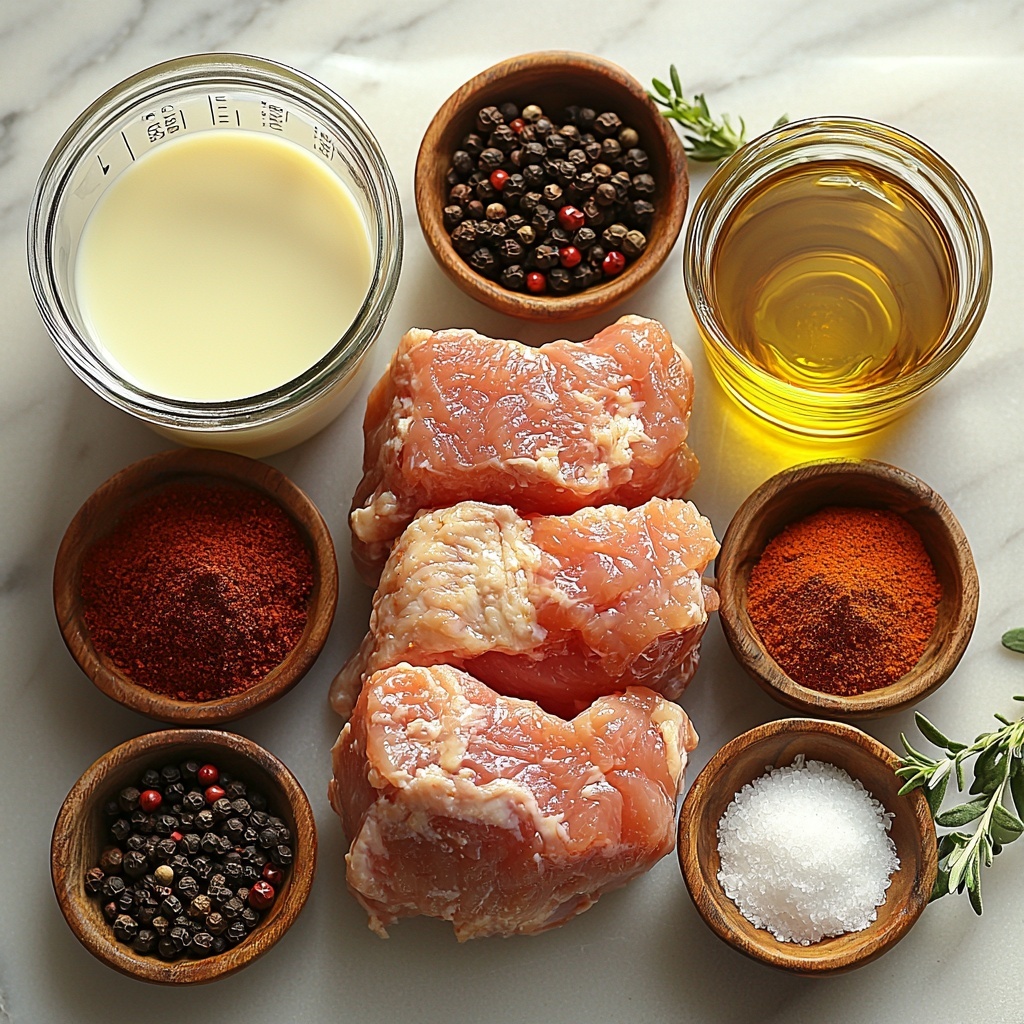 These handful of simple ingredients are the stars of the show, each adding its own special touch to create that unbeatable texture and flavor. From the tangy buttermilk that tenderizes the chicken to the perfectly seasoned flour that forms the ultra-crispy crust, every element is essential for pulling off this dish flawlessly.