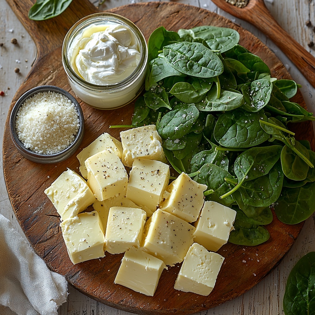 These ingredients are refreshingly simple but essential to crafting the perfect balance of creamy texture, vibrant color, and deep flavor. Each one brings something special: fresh spinach for that earthy green punch, artichoke hearts for a subtle tang, cheeses for richness, and seasonings that tie it all together.