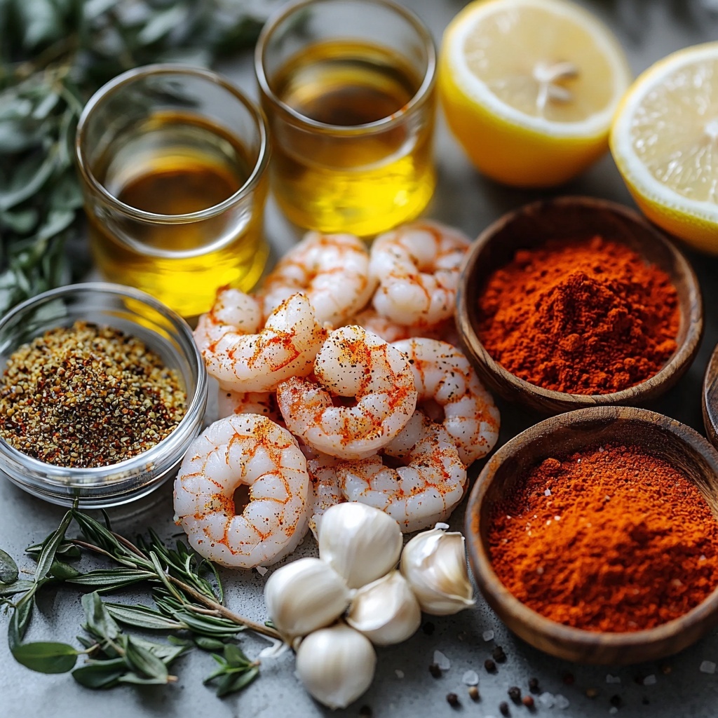 In a small bowl, combine your Cajun seasoning, smoked paprika, garlic powder, onion powder, thyme, oregano, salt, and black pepper. Mixing these spices ahead of time ensures every shrimp gets that consistent, mouthwatering flavor boost.