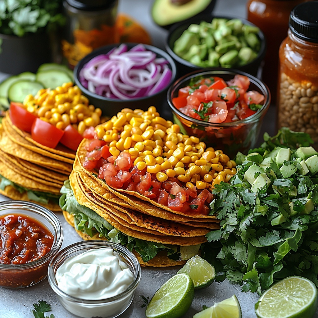 This vibrant and flavorful tostada recipe features crispy tostada shells topped with hearty refried pinto beans seasoned with cumin and paprika, complemented by fresh shredded lettuce, diced tomato, red onion, creamy avocado, spicy jalapeños, crumbled queso fresco, cilantro, and lime wedges. Optional toppings like sour cream, salsa, and hot sauce add customizable zest, making it a perfect quick and satisfying Mexican-inspired meal.