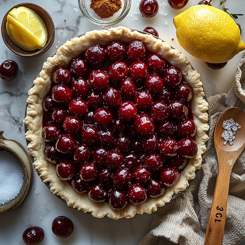 Gathering simple yet essential ingredients is key to creating the perfect texture and vibrant flavor in this pie. Each item plays its part, from the juicy cherries bringing that signature burst of color and sweetness to the cinnamon adding a warm, spicy hint that elevates every bite.