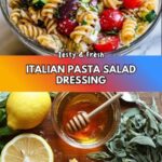 A vibrant and tangy Italian pasta salad dressing made with olive oil, red wine vinegar, lemon juice, Dijon mustard, garlic, Italian seasoning, and Parmesan cheese. This dressing perfectly balances acidity and richness, enhanced with a touch of honey or sugar for subtle sweetness, ideal for coating your favorite pasta salad.