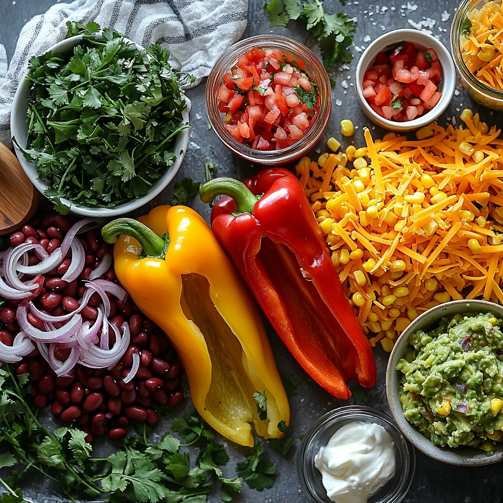 Getting the ingredients right is essential to capture the authentic tastes and textures of this Mexican Stuffed Bell Peppers Recipe. Each component plays a key role, from the sweet crunch of bell peppers to the hearty richness of ground beef, plus colorful additions like beans and corn that bring balance and depth.