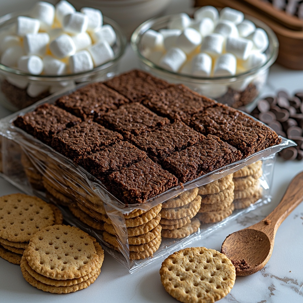 This recipe keeps things straightforward by using a few pantry staples that come together to create layers of flavor and texture. Each ingredient plays an essential role, from the rich brownie batter creating a dense base to the crunchy graham cracker crusts adding that signature s’mores snap.