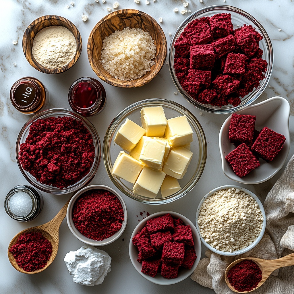 Getting the ingredients right is the secret to making these Red Velvet Cookie Sandwiches with Cream Cheese Filling Recipe just perfect every time. Each element plays a vital role in the cookie’s texture, flavor, and that gorgeous red hue that makes this recipe stand out.