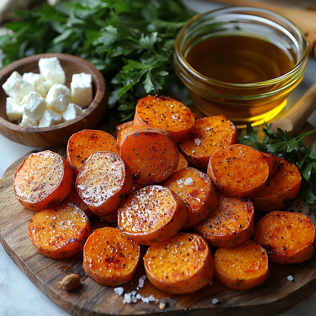 To bring the Roasted Sweet Potato Rounds with Honey and Feta Recipe back to life, reheat them in a 350°F oven for about 10 minutes until warmed through and slightly crisp again. Avoid microwaving as it can make them soggy.
