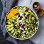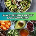 A refreshing and vibrant Shaved Brussels Sprouts Salad dressed with a tangy citrus vinaigrette. This salad combines crisp shaved Brussels sprouts with sweet craisins, crunchy roasted pistachios, creamy avocado, and tangy feta cheese, all tossed in a zesty lemon-orange vinaigrette for a perfect balance of flavors and textures.
