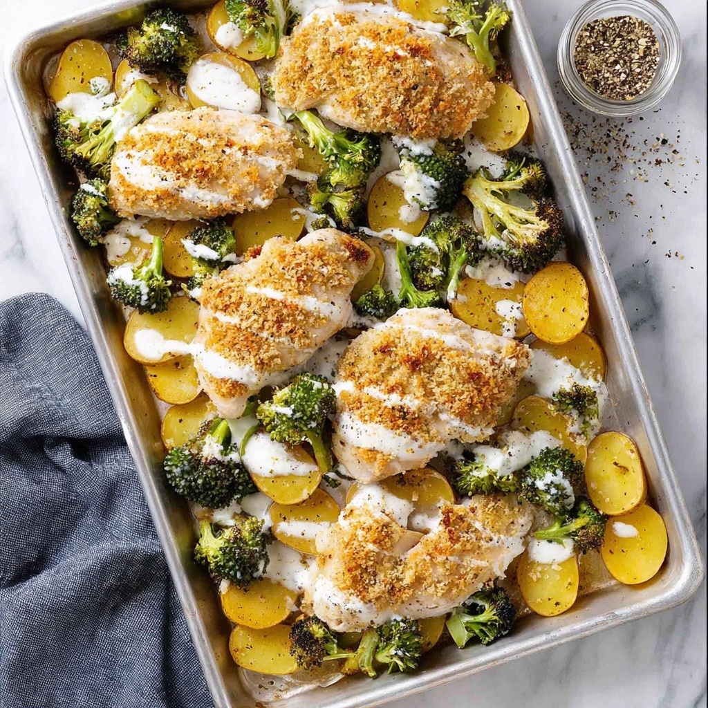 Enjoy a delicious and easy Sheet Pan Everything Bagel Chicken with golden roasted Yukon gold potatoes and vibrant broccoli, topped with a savory everything bagel seasoned panko crust and a creamy cheese sauce. This one-pan meal is perfect for a wholesome dinner that combines tender chicken, crispy potatoes, and perfectly roasted broccoli in just 45 minutes.