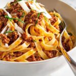 Finally, toss the perfectly cooked pasta with the rich Bolognese sauce, ensuring every strand or ribbon is generously coated. Serve immediately with a generous sprinkle of freshly grated Pecorino Romano cheese on top. You’ve just created a dish full of flavor and love, great for any occasion.