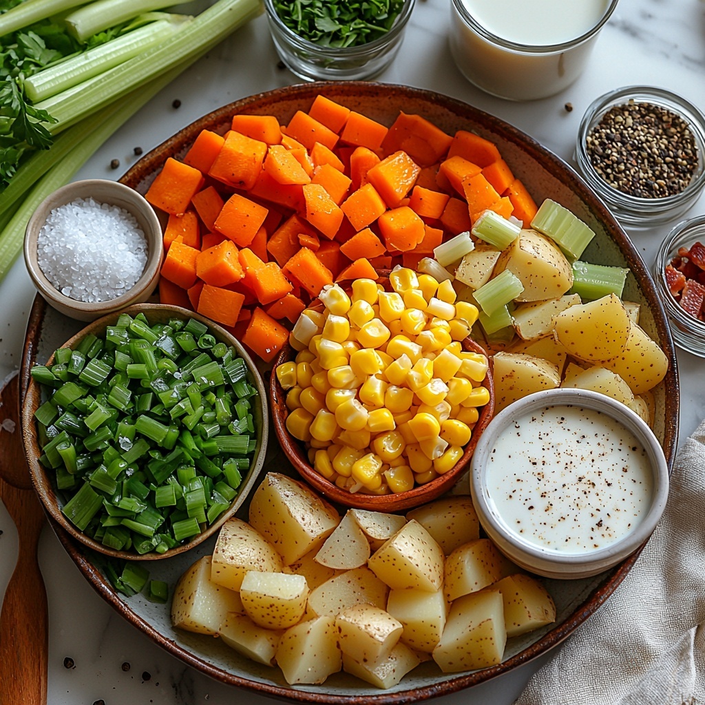 This Slow Cooker Corn Chowder Recipe uses simple, wholesome ingredients that come together beautifully without any fuss. Each component adds a special touch, from the natural sweetness of corn to the creamy blend of milk and cream that gives the chowder its luxurious texture.