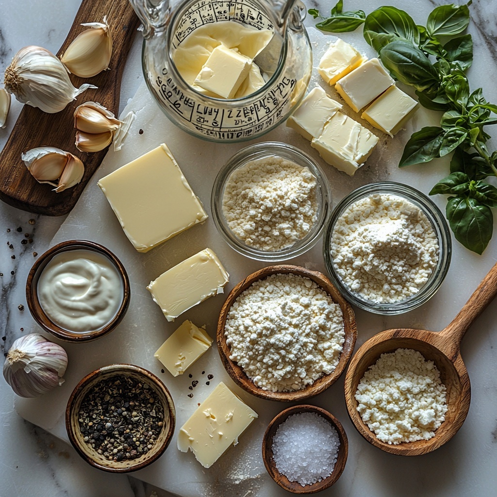 These ingredients are simple pantry staples, each playing a crucial role in crafting the smooth, luxuriant texture and bold savory taste of the sauce. From the creamy depth of butter and cream to the fragrant punch of garlic and herbs, every addition works together to create that signature white garlic pizza sauce flavor.